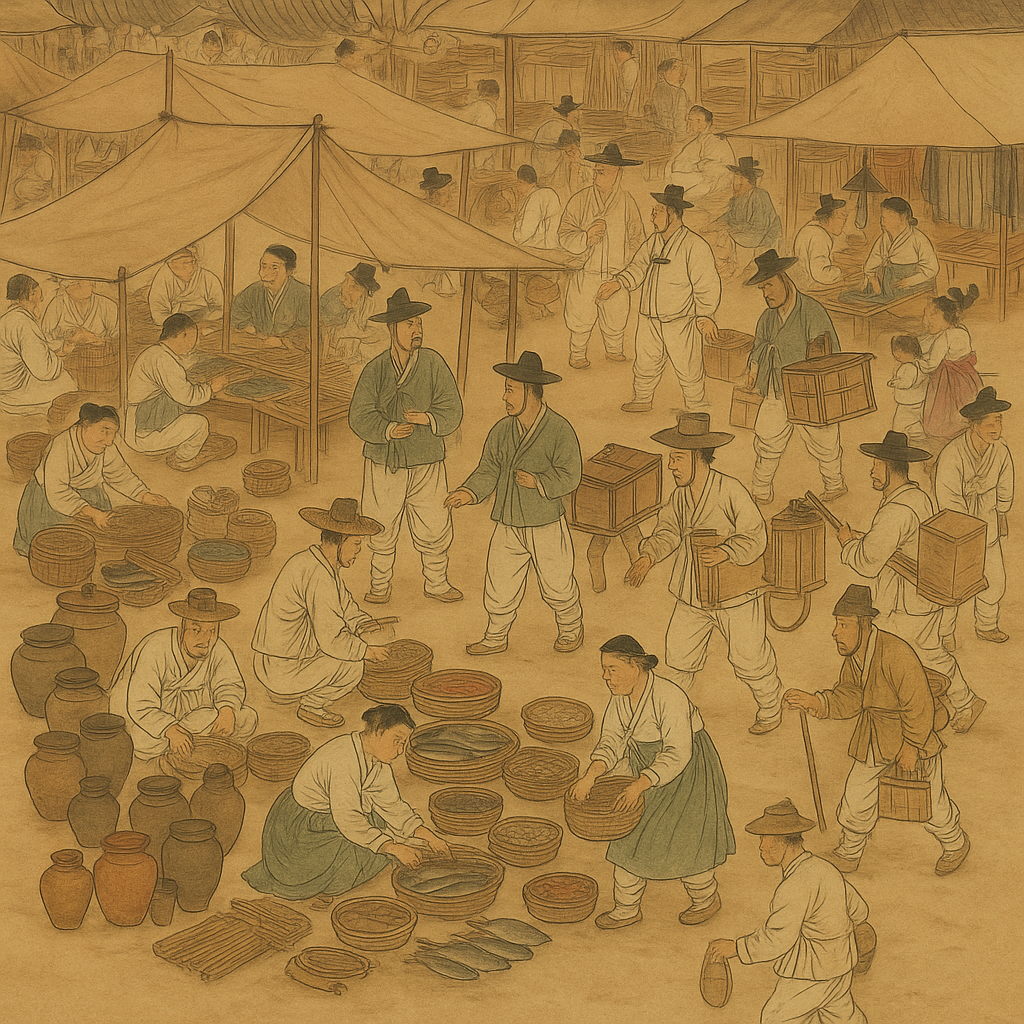 조선 시대 시장과 상업 활동은 농업 사회 속에서도 끊임없이 변화하고 발전했습니다. 5일장은 지역 사회를 연결하는 중요한 교류의 장이었고, 시전 상인은 상업 질서를 유지하는 한편 갈등도 낳았습니다. 화폐 경제의 발전과 민간 상업의 성장까지, 조선 시대 경제 생활은 단순히 과거의 모습이 아니라 오늘날 우리의 전통 시장 문화로 이어지고 있습니다.